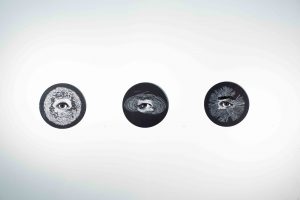 “Art translates hidden secrets into tangible forms,” says Eiko. She means secrets about the underlying structure of the universe — atoms, neutrinos, quarks. But she prefers to express this macro/micro prose poem in direct visual language, as with the dissipating illusion pieces, by showing rather than telling. “I like to watch people in front of them get physically engaged, to see that moment where they ‘get it.’ Because of the reflective properties of paint-backed plexi, one sees oneself in the work as one contemplates it. The architectural surroundings are reflected too, and it is only at that moment of reflection when the artist considers them finished. Their contextualization, in Eiko’s eyes, “makes the collectors the final collaborators. I do believe it’s not really done until they place it. You live in the piece,” she says. “The piece is alive, and every new moment makes it new again.” That’s kind of like life, too.
