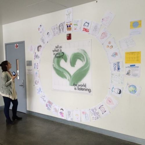 In 2011, Eiko was invited to collaborate with Los Angeles Education Partnership to bring the-green-heart into Los Angeles High schools. Over the past six years, the-green-heart has had 26 installations in Los Angeles schools providing the students the experience of running an interactive art piece. The students found the-green-heart a safe space to express themselves anonymously – reading private thoughts and feelings of fellow classmates opened new lines of communications and understanding.